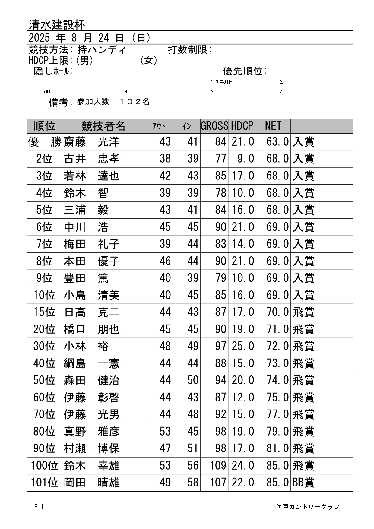 北海道ハーフオープンコンペ | 2025/07/19 | OUT | IN |