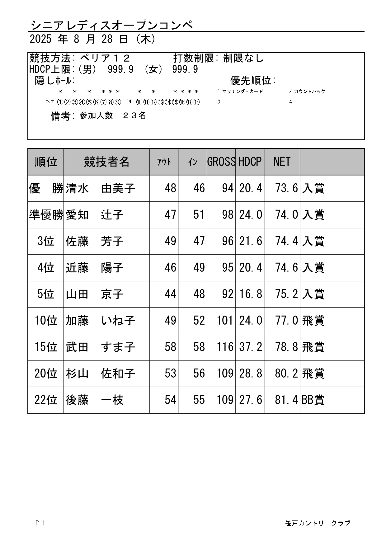 春の旨いもんハーフオープンコンペ | 2025/04/27 | OUT | IN |