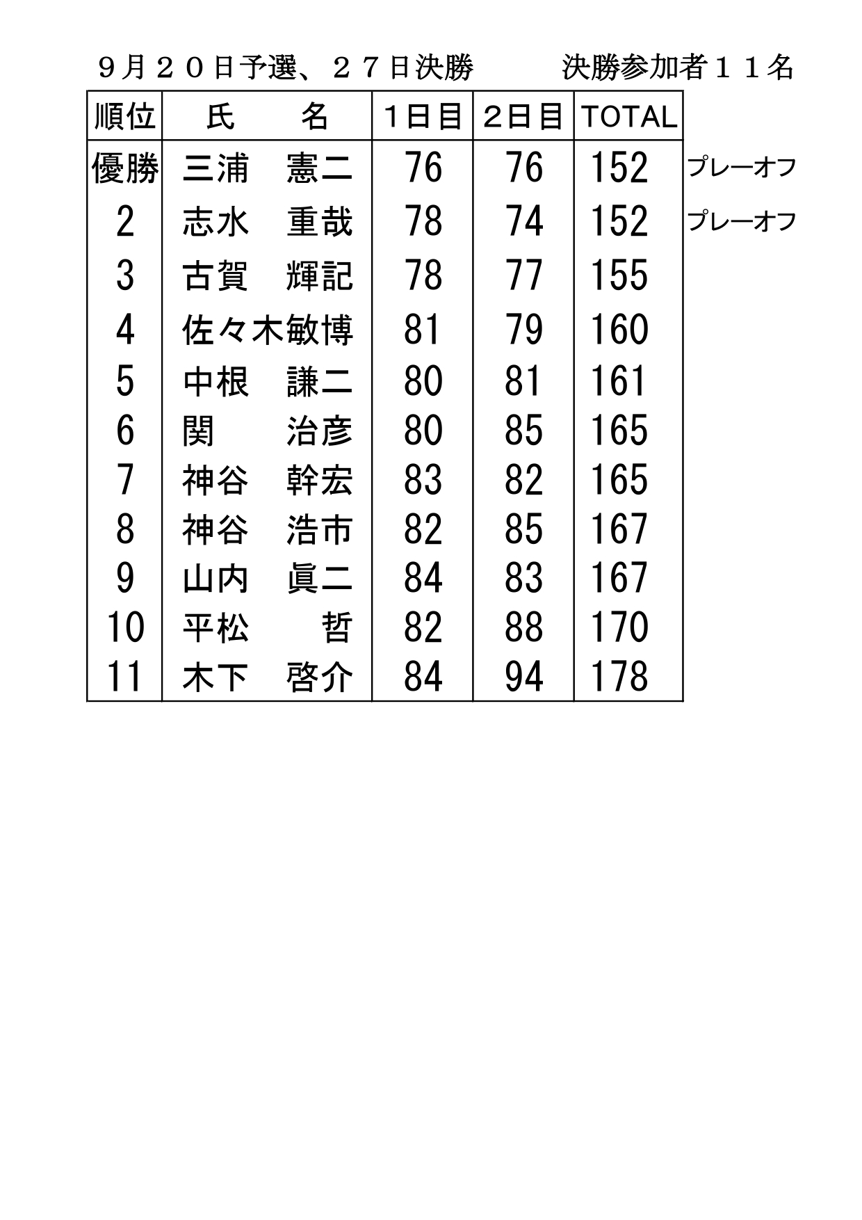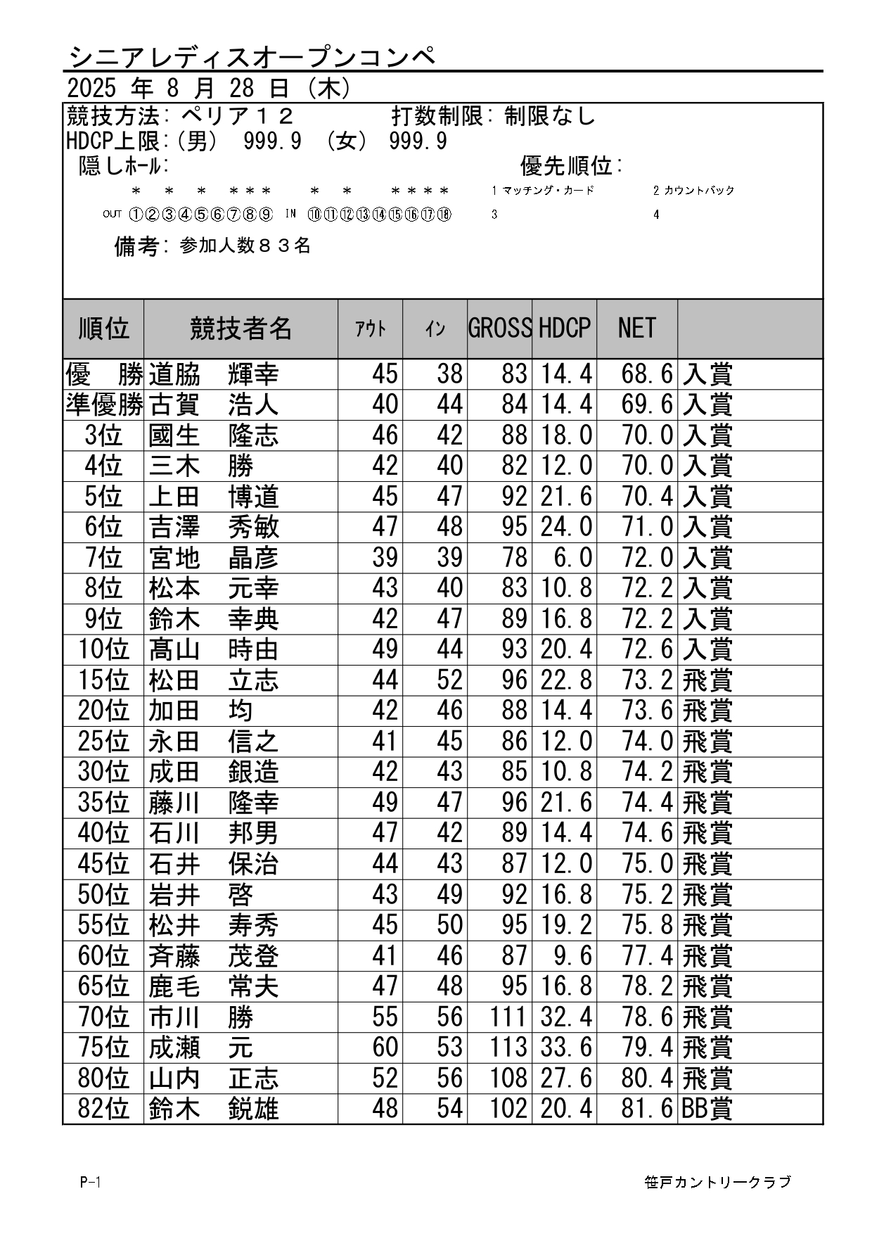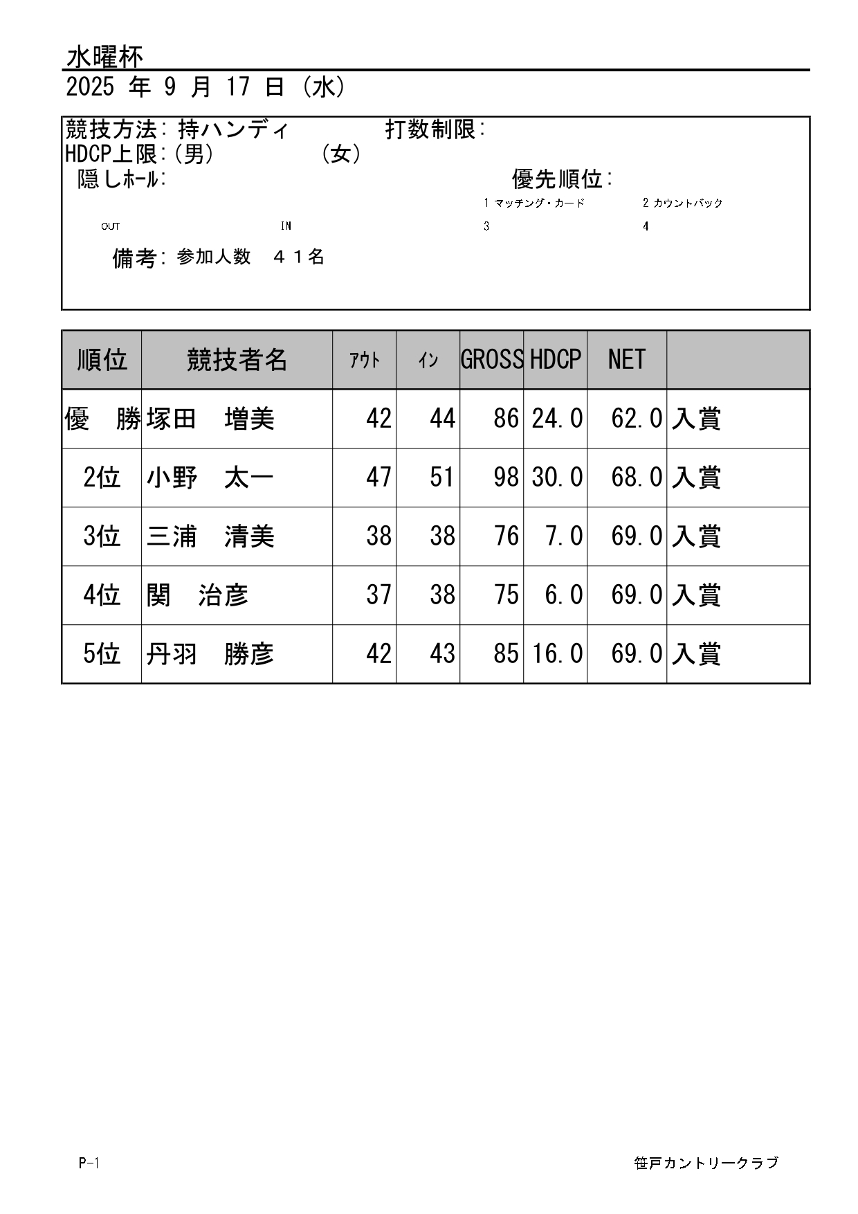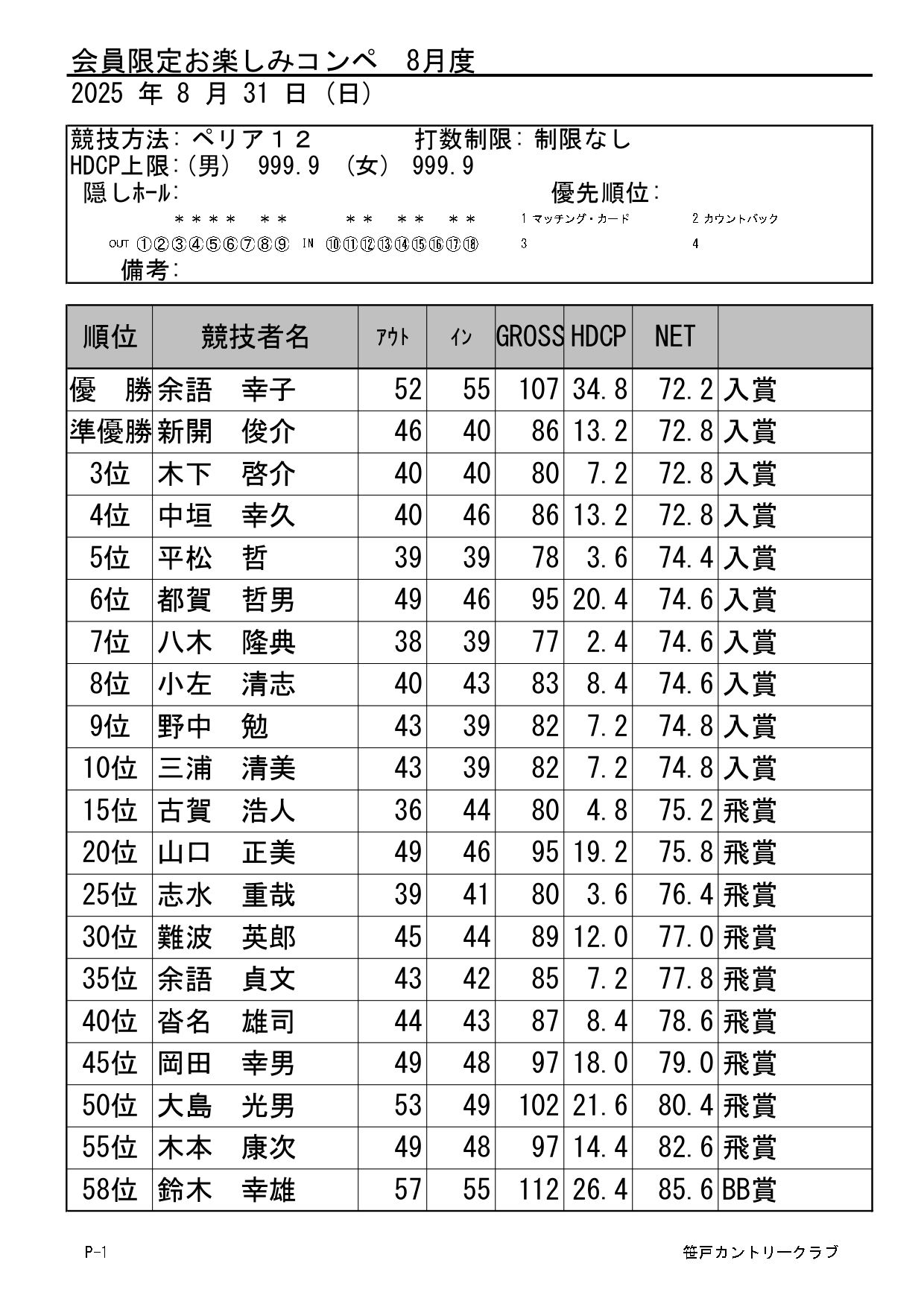 秋の旨いもんハーフオープンコンペ | 2025/10/04 | OUT | IN |