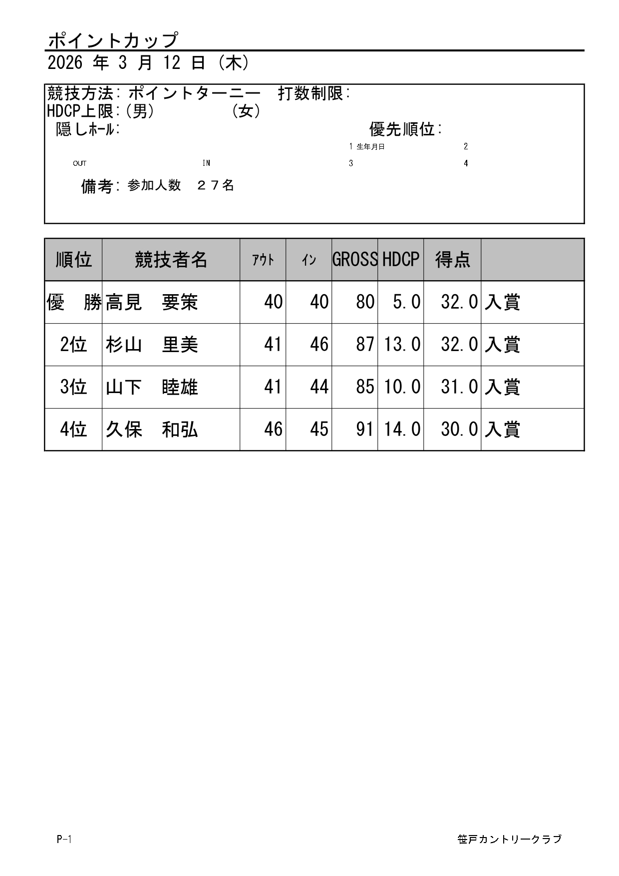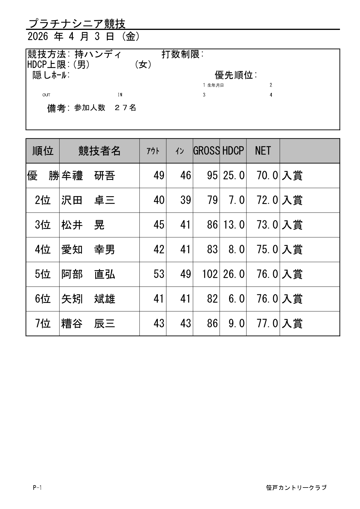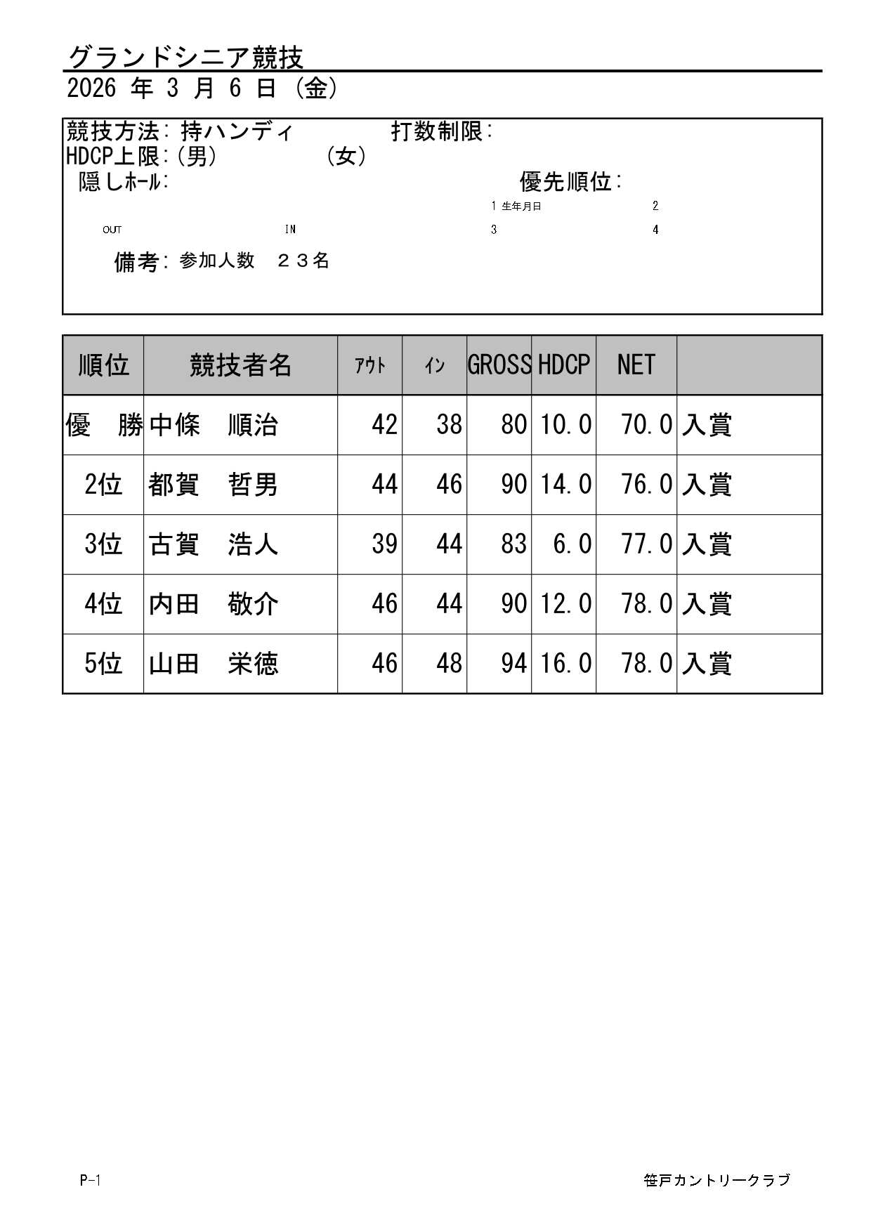 理事長杯・選手権競技