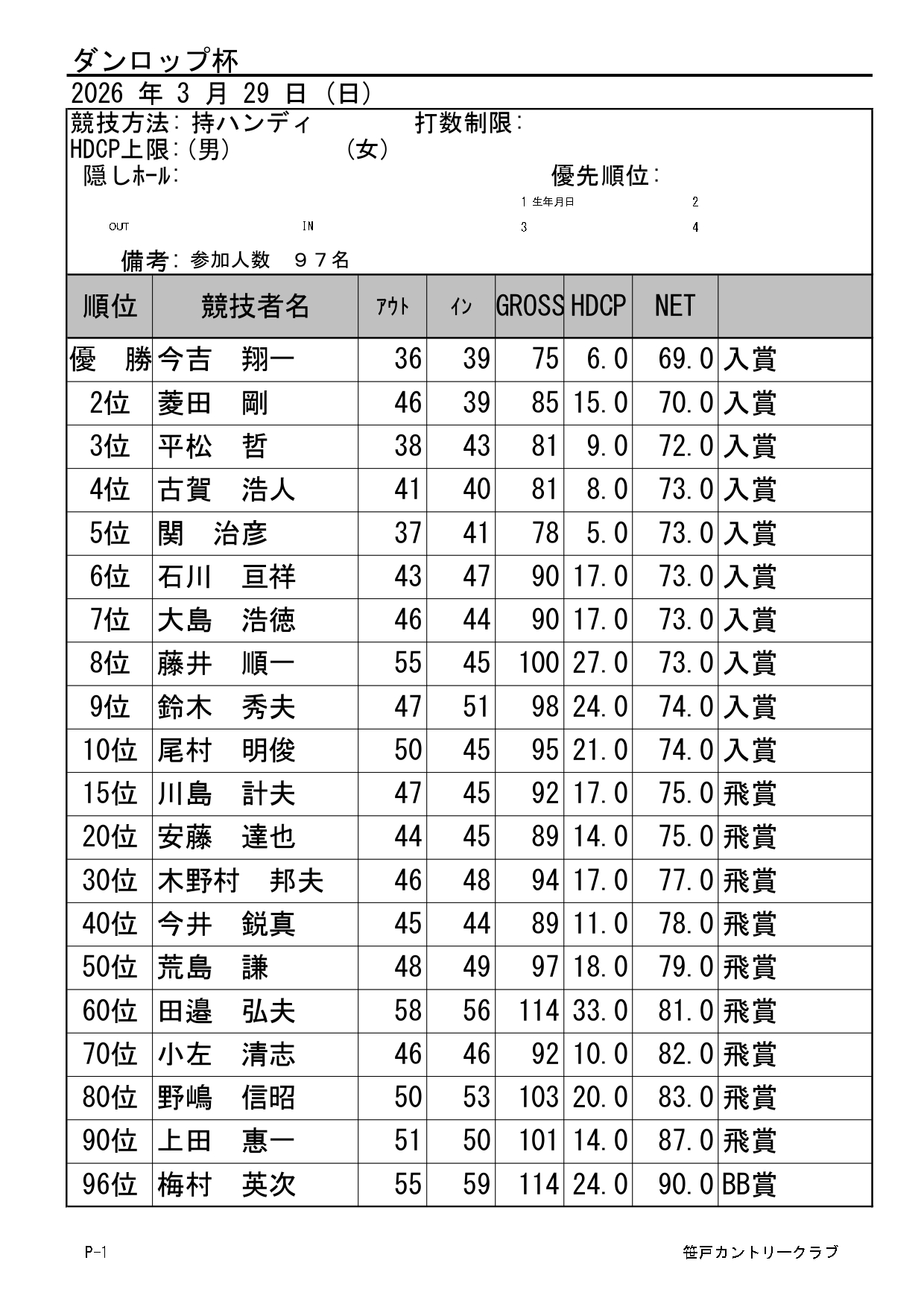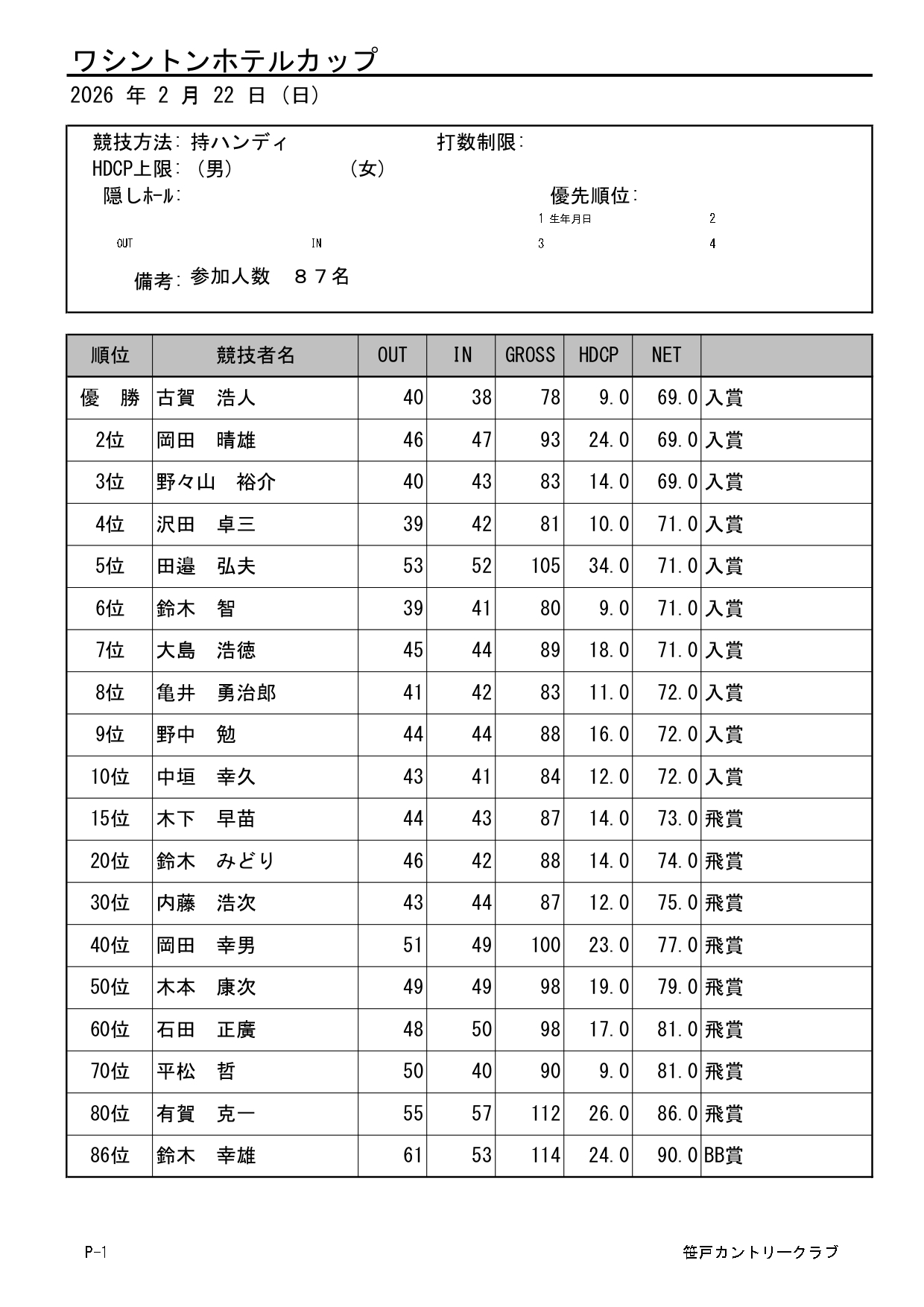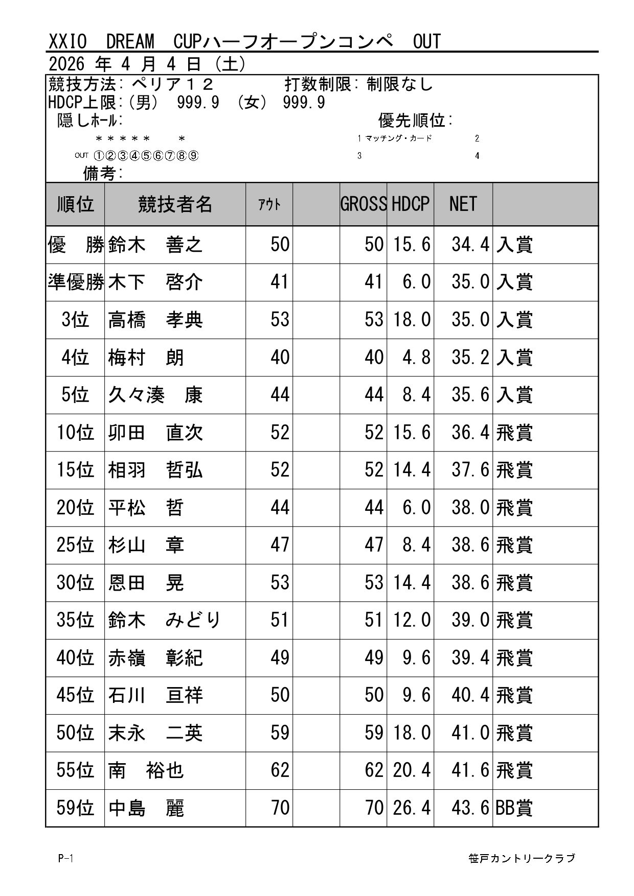 理事長杯・選手権競技
