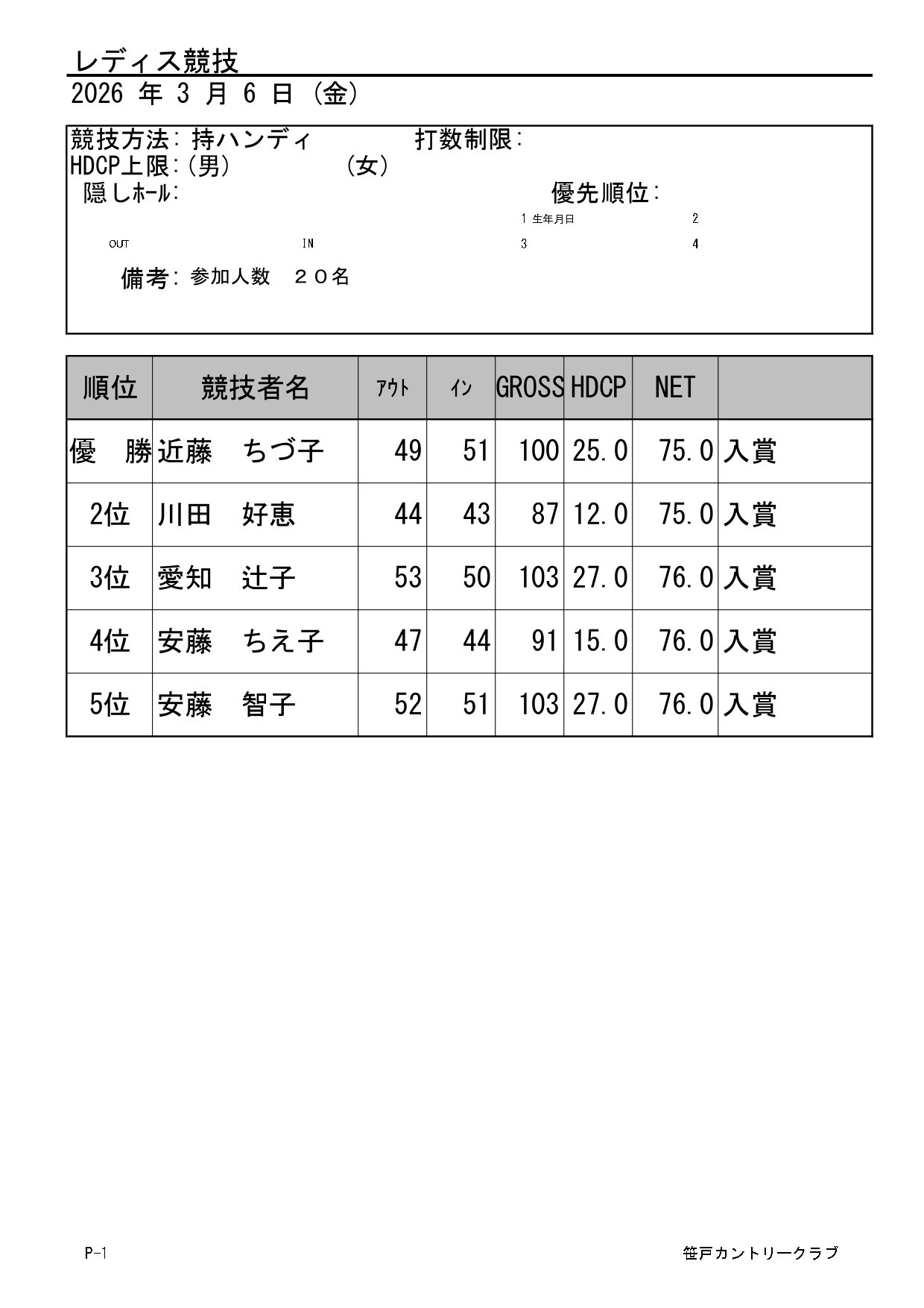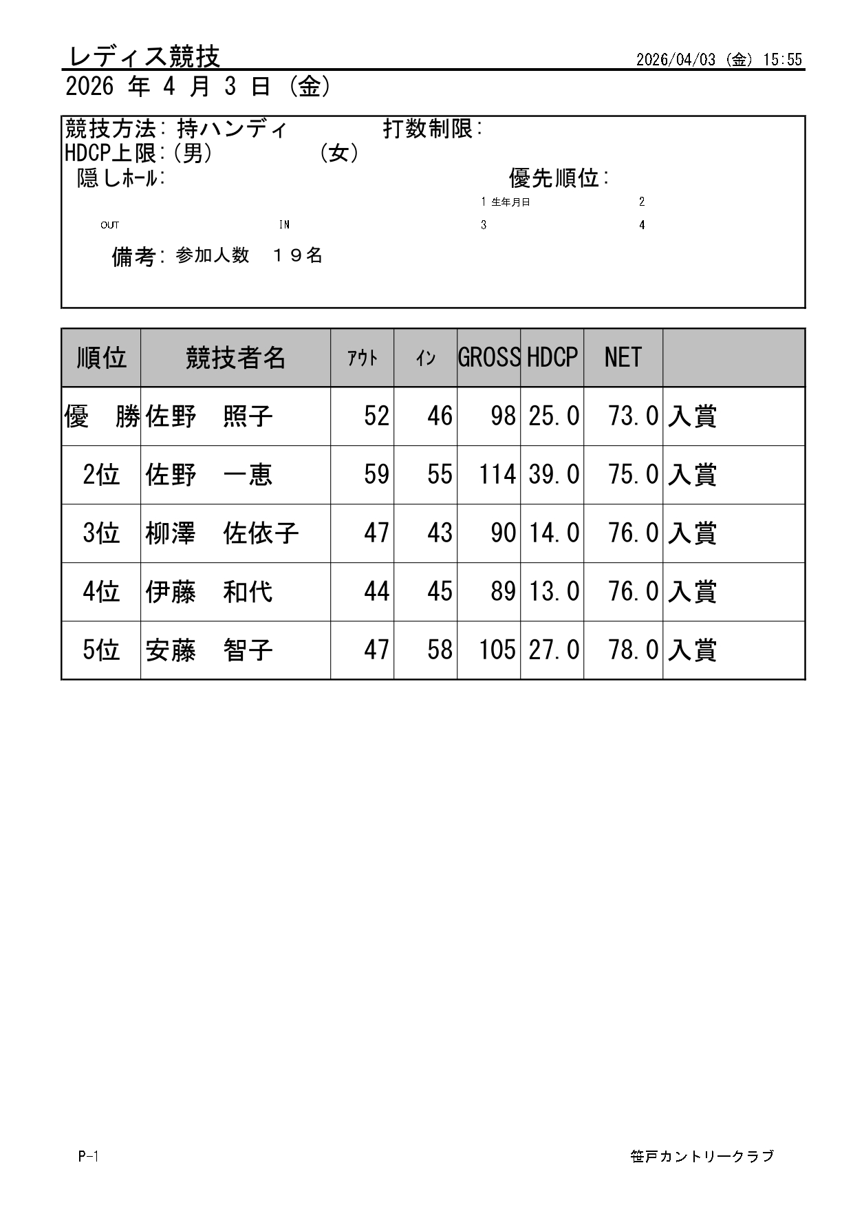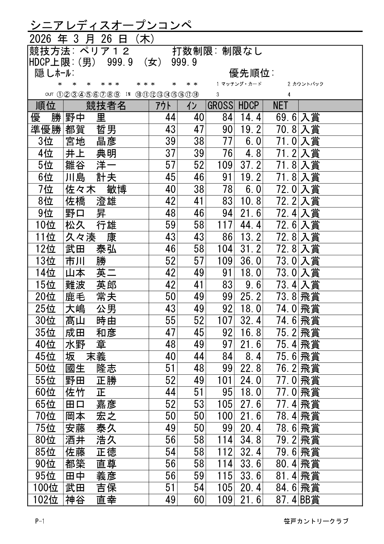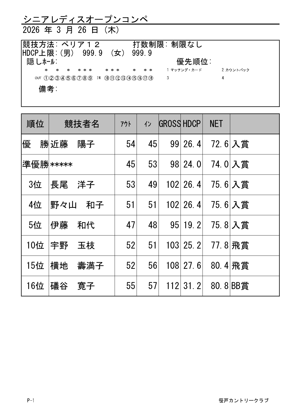 シニア・レディースオープンコンペ