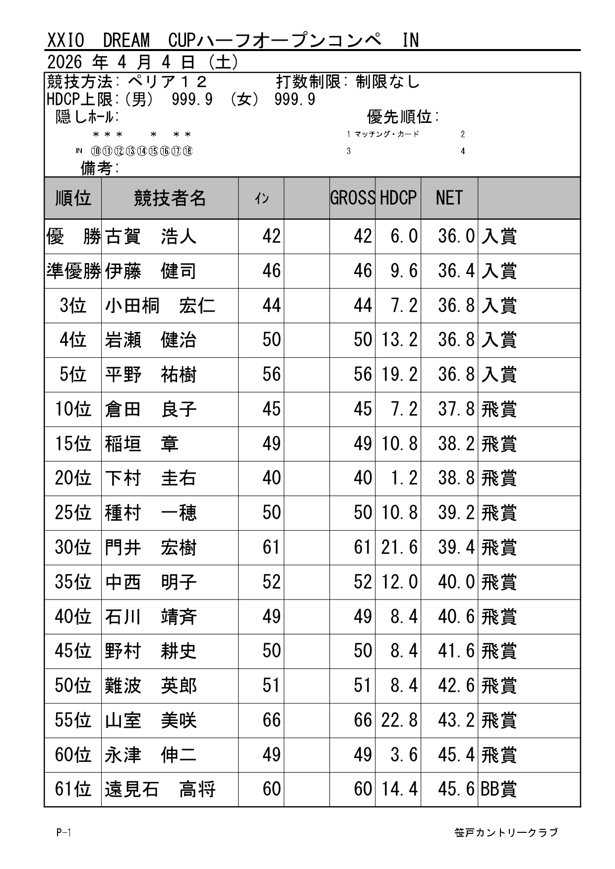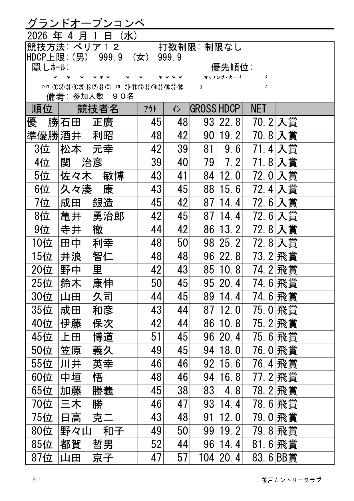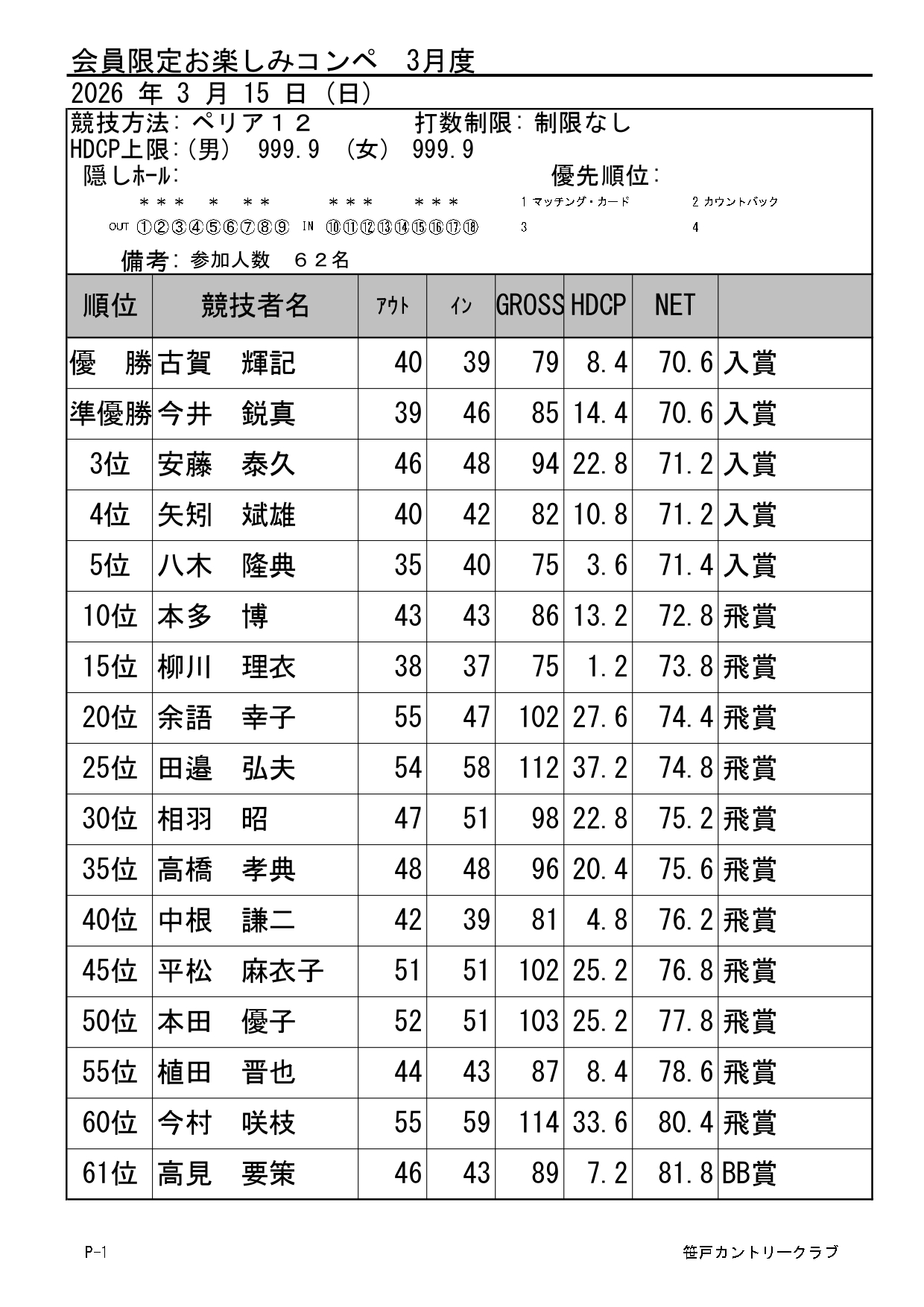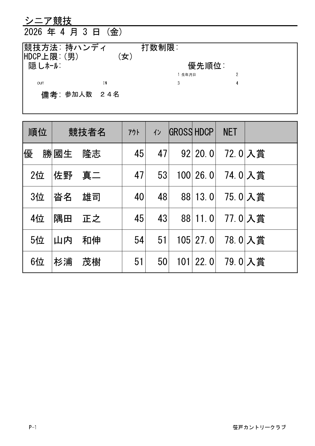 シニア・レディースオープンコンペ