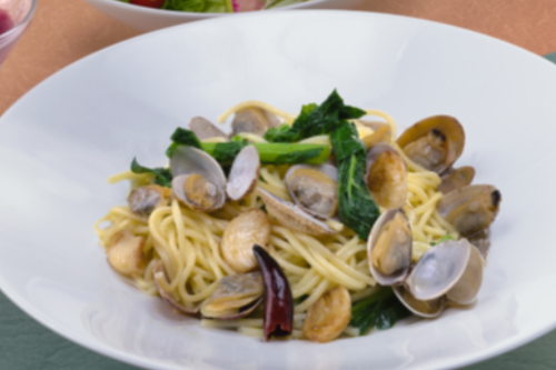 あさりとなばなのスープパスタ